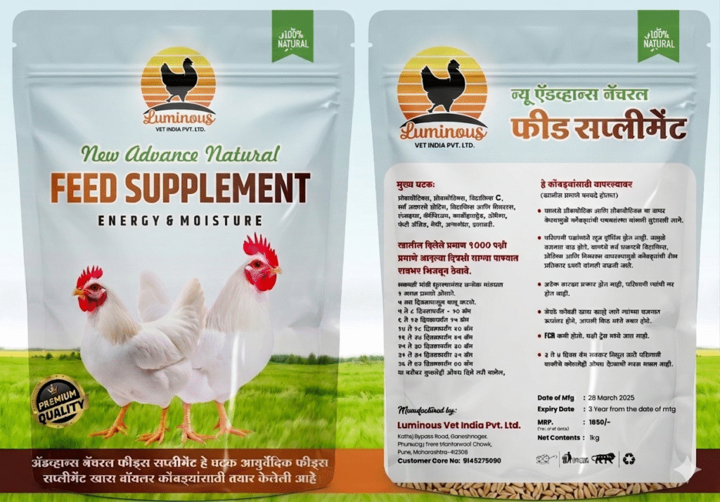 हे नैसर्गिक फीड सप्लिमेंट खास गावठी व देशी पोल्ट्री पक्ष्यांसाठी तयार केलेले आहे. यामुळे पक्ष्यांची वाढ, पचनशक्ती व रोगप्रतिकारशक्ती सुधारते.
